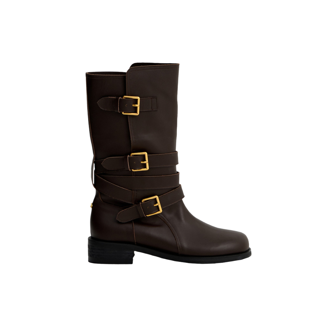 아떼 바네사브루노 레더 버클 미들 부츠 브라운