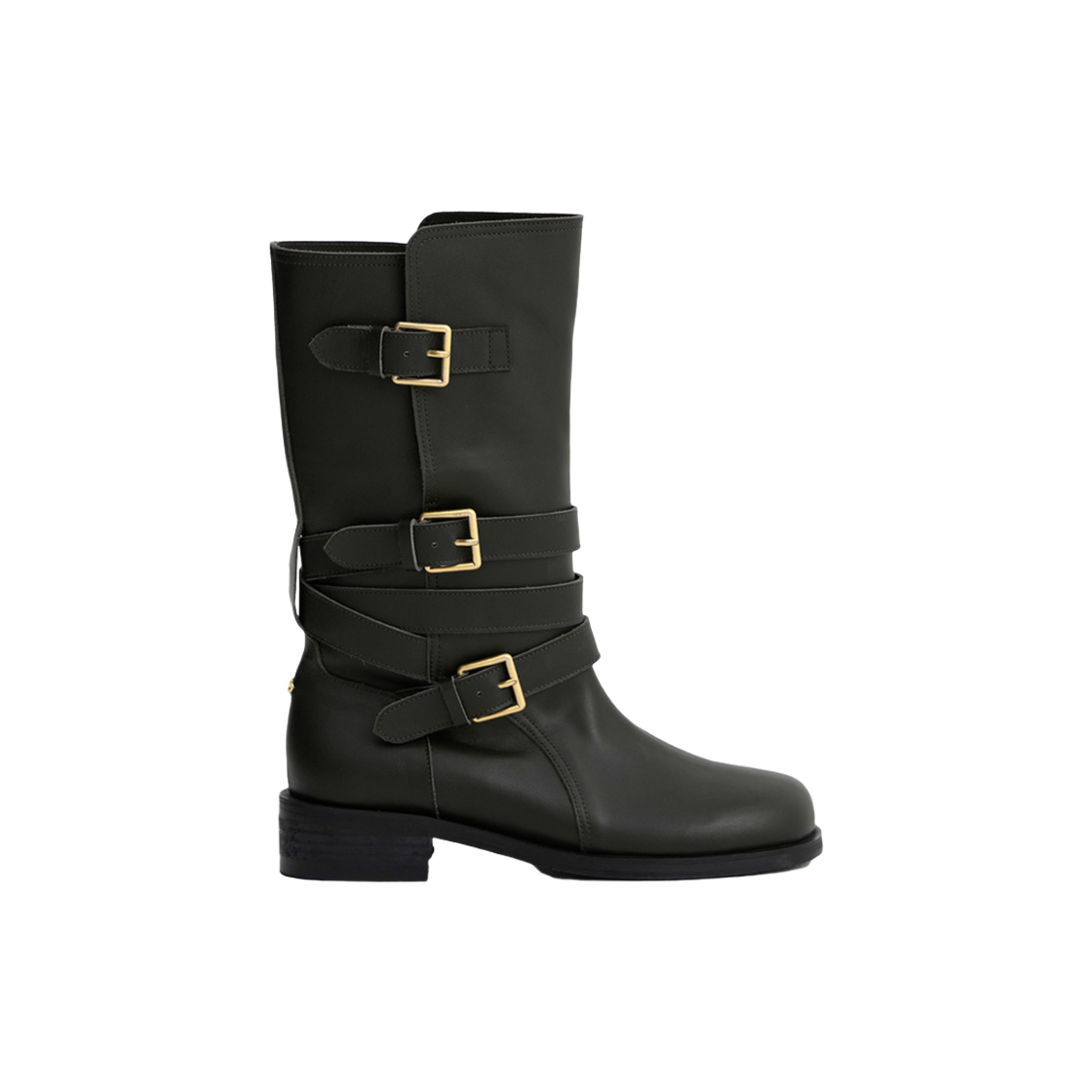 아떼 바네사브루노 레더 버클 미들 부츠 브라운