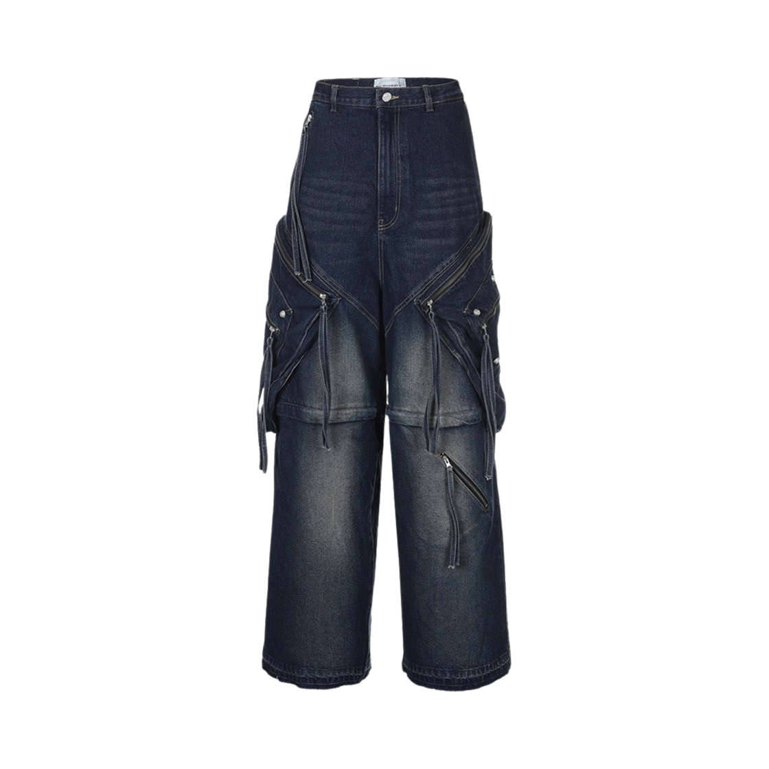 써저리 더블 폴딩 오버 와이드 배기 진 디스트로이드 블루