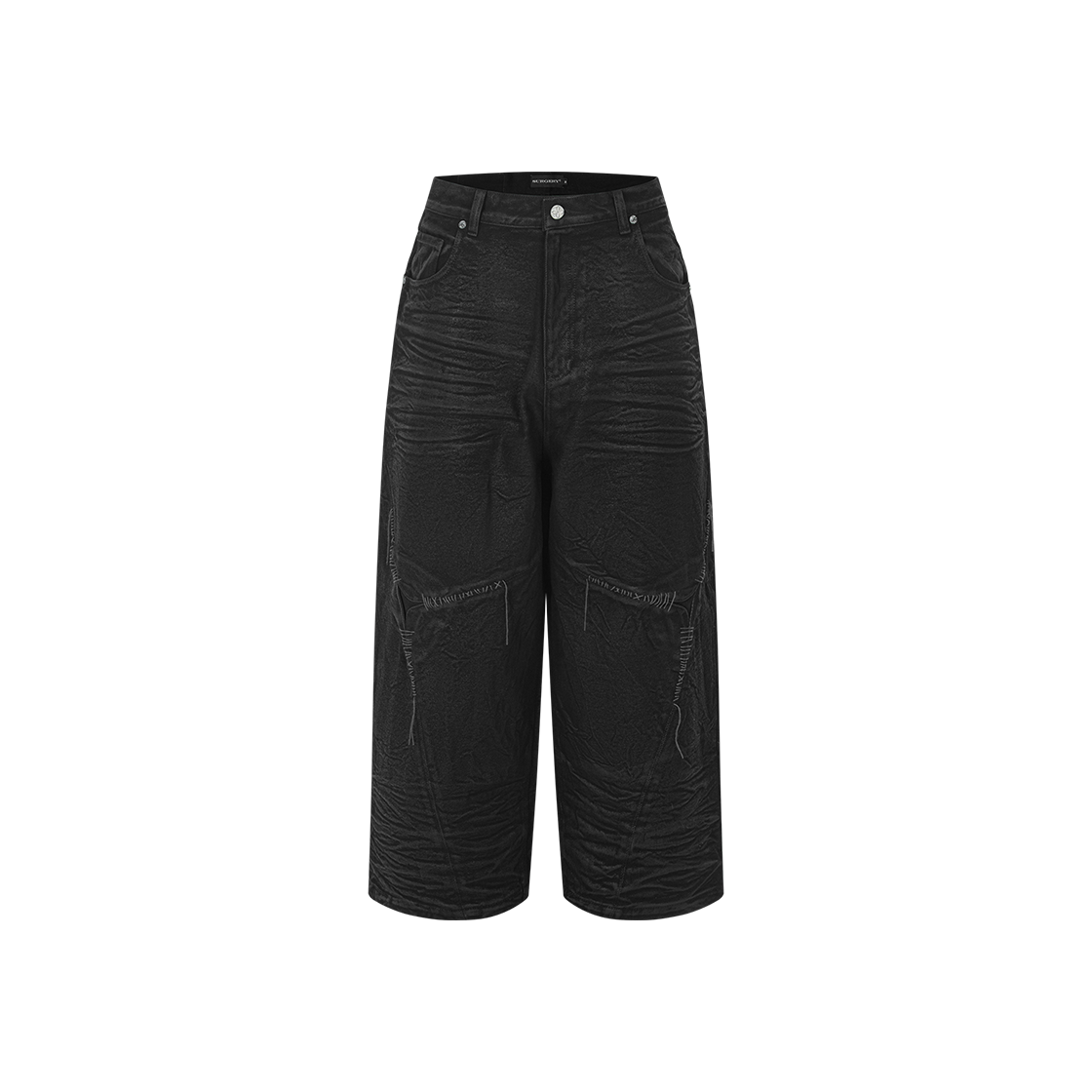 써저리 더블 폴딩 오버 와이드 배기 진 블랙 데님