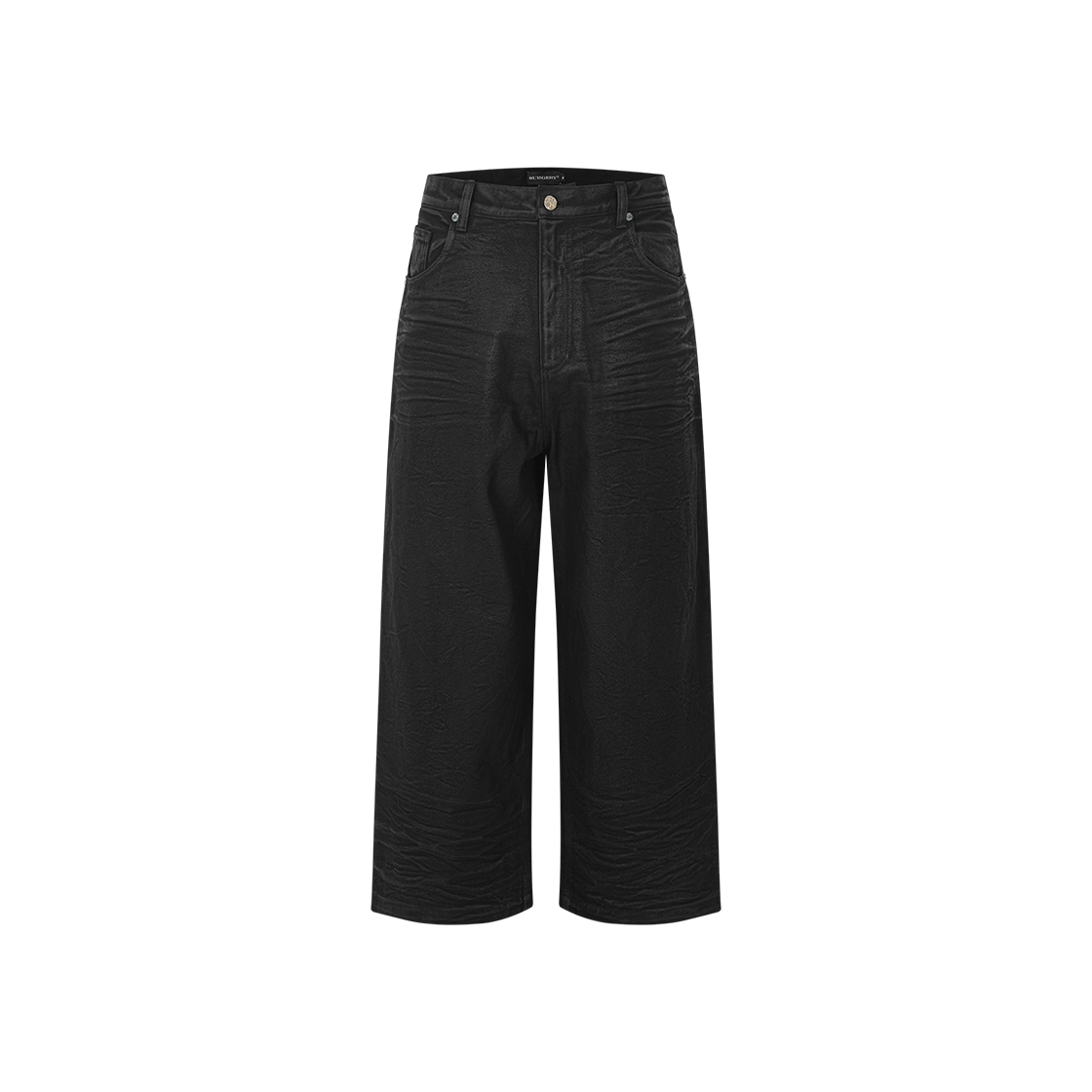 써저리 본 커팅 와이드 버니시드 팬츠 블랙
