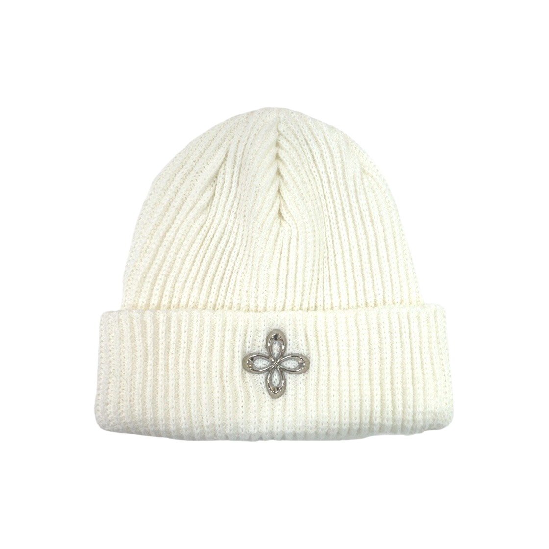 써저리 핸드 스티치 자수 로고 비니 아이보리