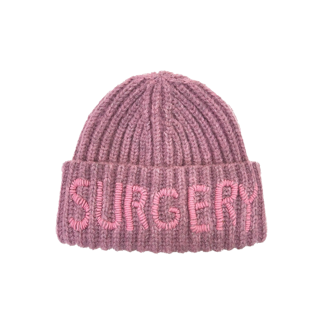 써저리 핸드 스티치 자수 로고 비니 핑크