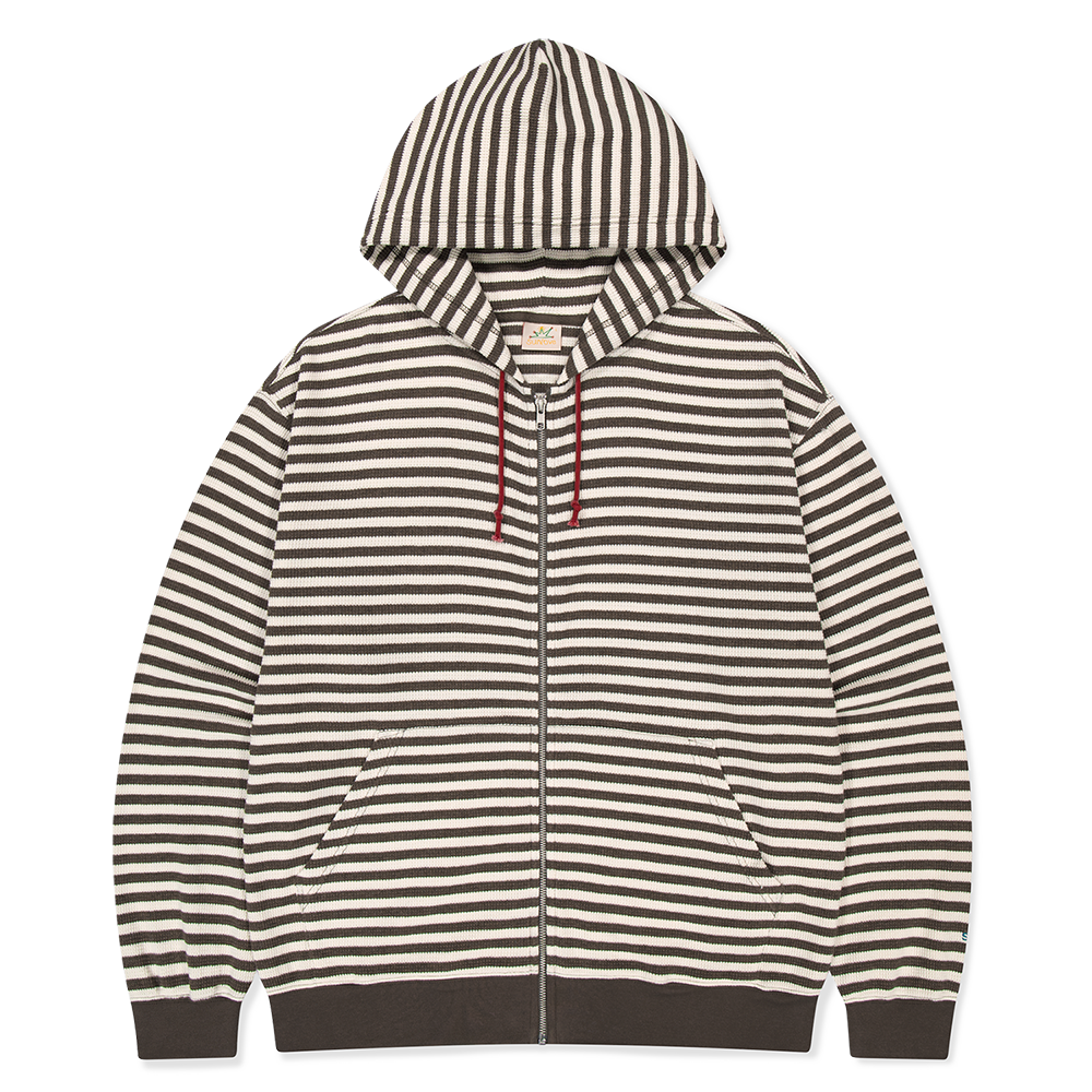 썬러브 x 나 홀로 집에 스트라이프 와플 집업 후드 브라운