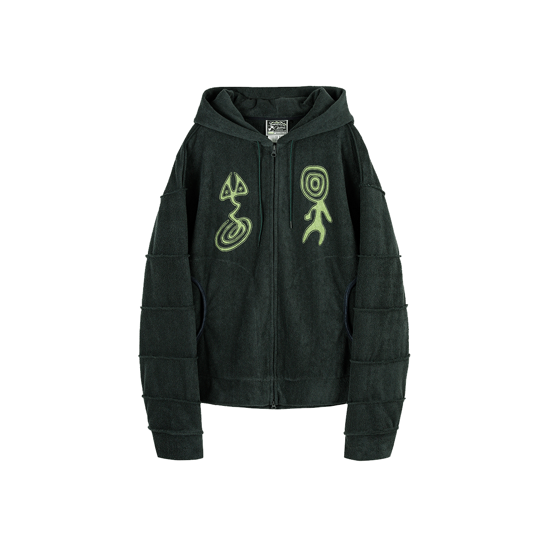 썸웨어아웃사이드 세그먼티드 슬리브 타월 로고 후디 다크그린