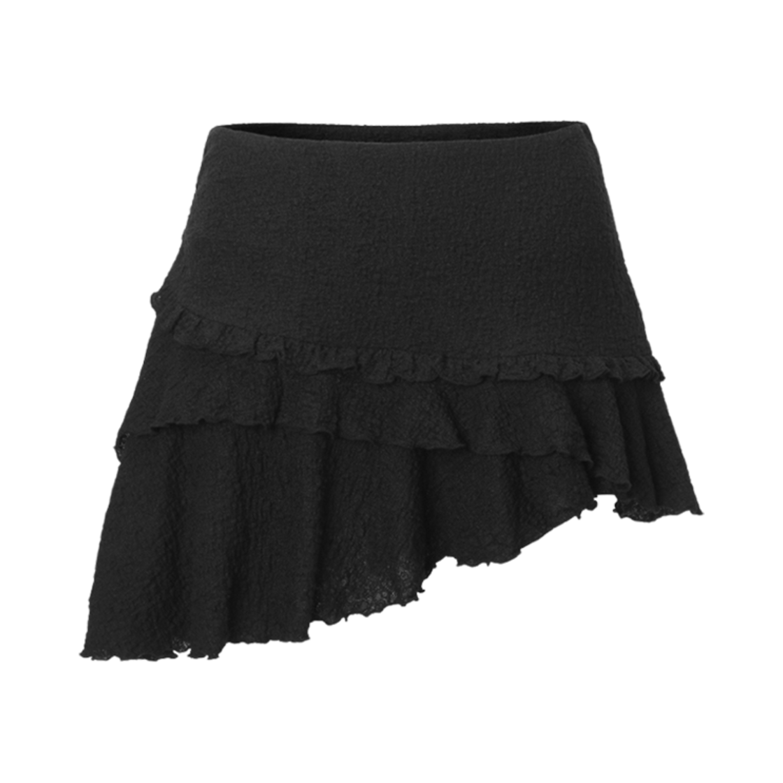 (W) 쓰리타임즈 스완 러플 스커트 블랙