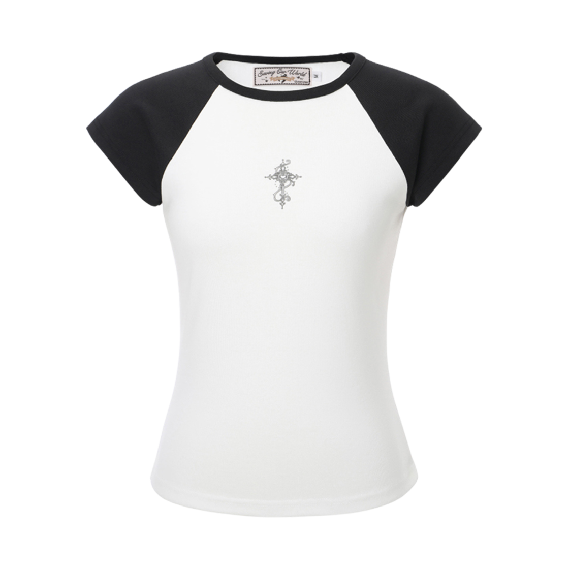 (W) 쓰리타임즈 하트 크로스 티셔츠 아이보리
