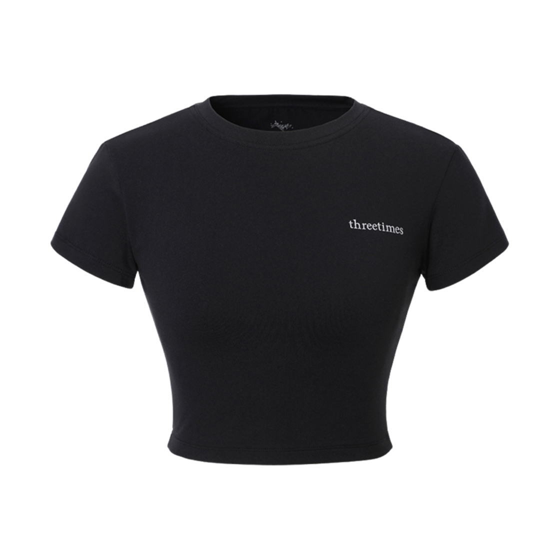 (W) 쓰리타임즈 소프트 크롭 티셔츠 블랙