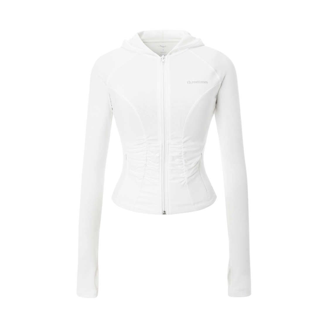 (W) 쓰리타임즈 파이핑 크롭 후드 화이트