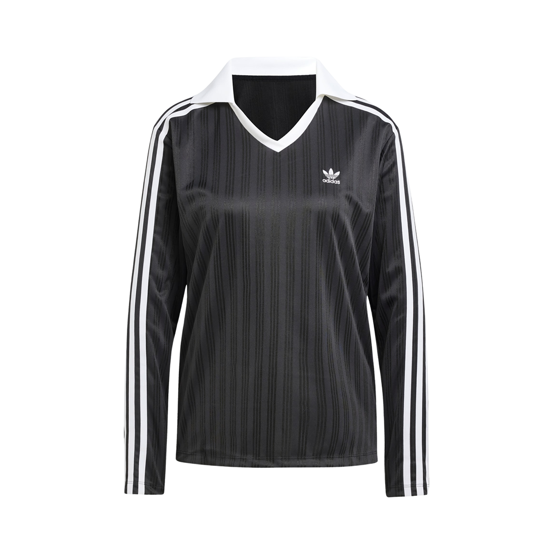 (W) 아디다스 아디컬러 풋볼 자카드 브이넥 폴로 셔츠 블랙 - KR 사이즈