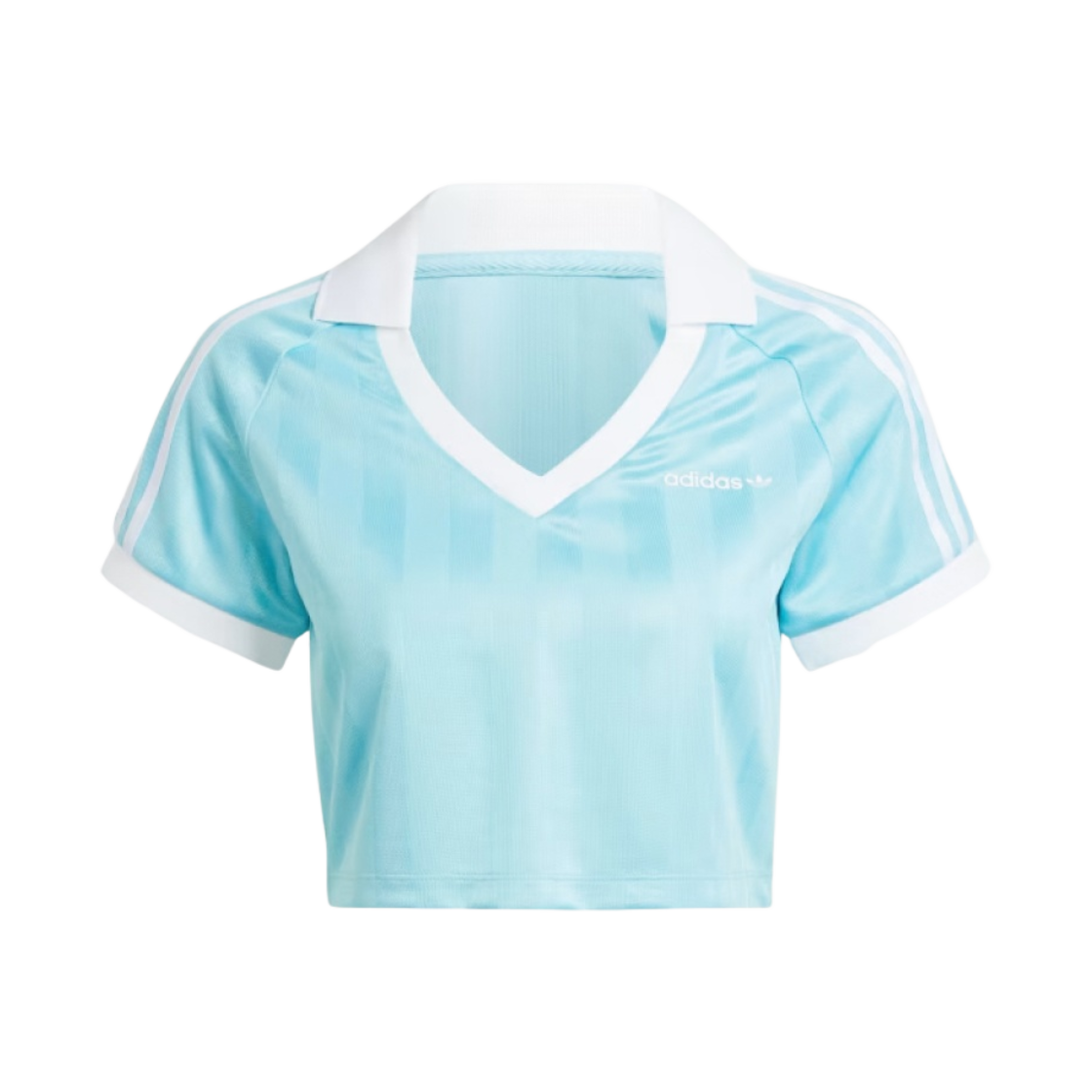 (W) 아디다스 아디컬러 풋볼 자카드 브이넥 크롭 폴로 셔츠 화이트 - KR 사이즈