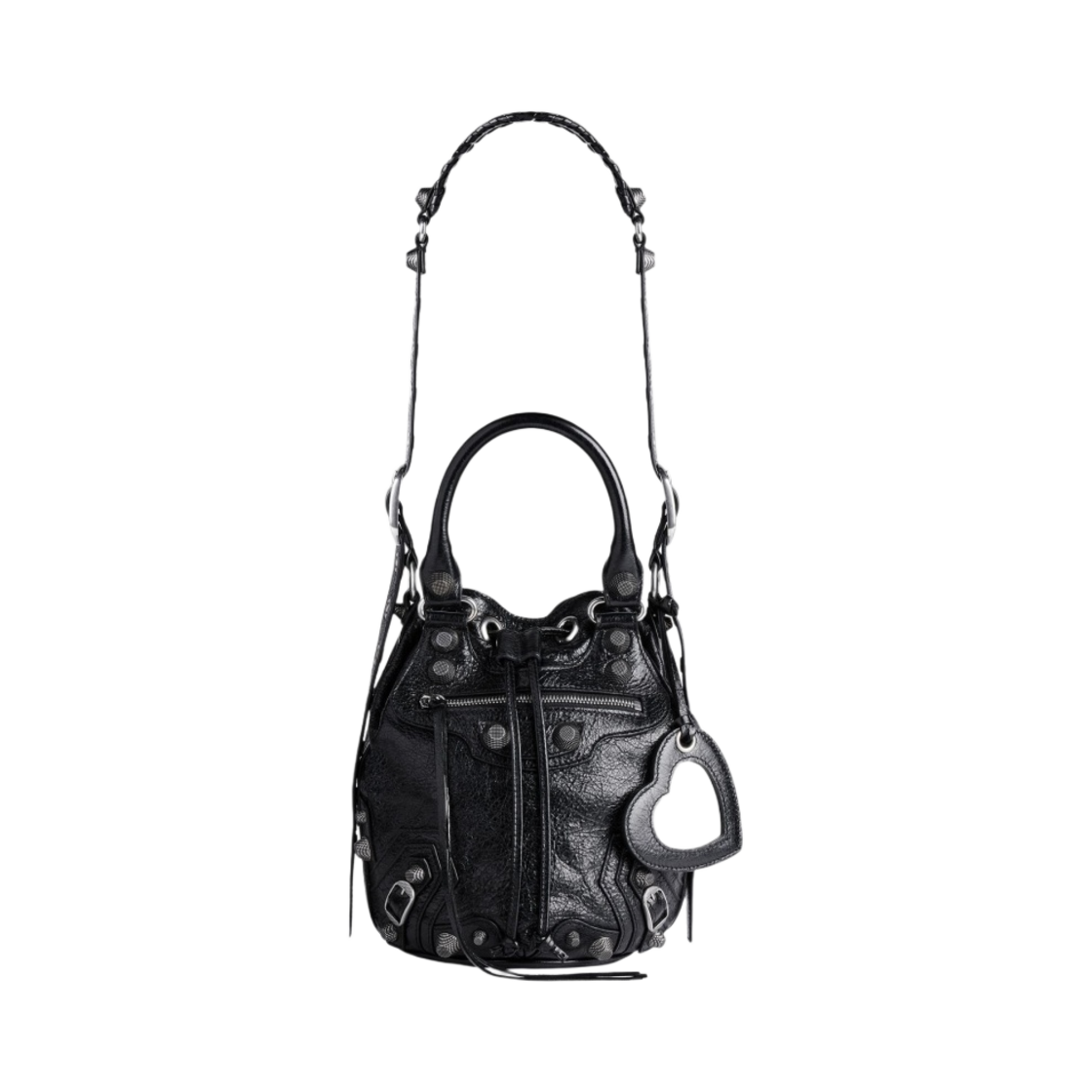 발렌시아가 아레나 램스킨 실버 하드웨어 르 카골 XS 버킷백 블랙
