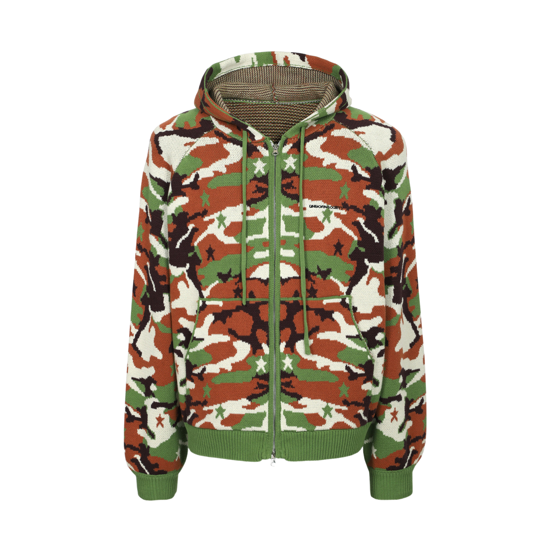 언본소사이어티 시그니쳐 니트 후드 집업 아미 카모