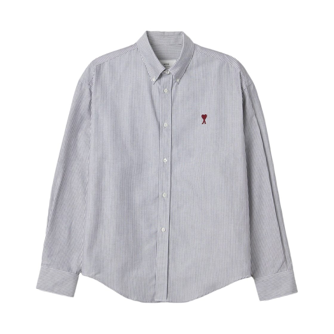 아미 스몰 하트 로고 버튼 다운 스트라이프 코튼 옥스포드 셔츠 화이트 그레이