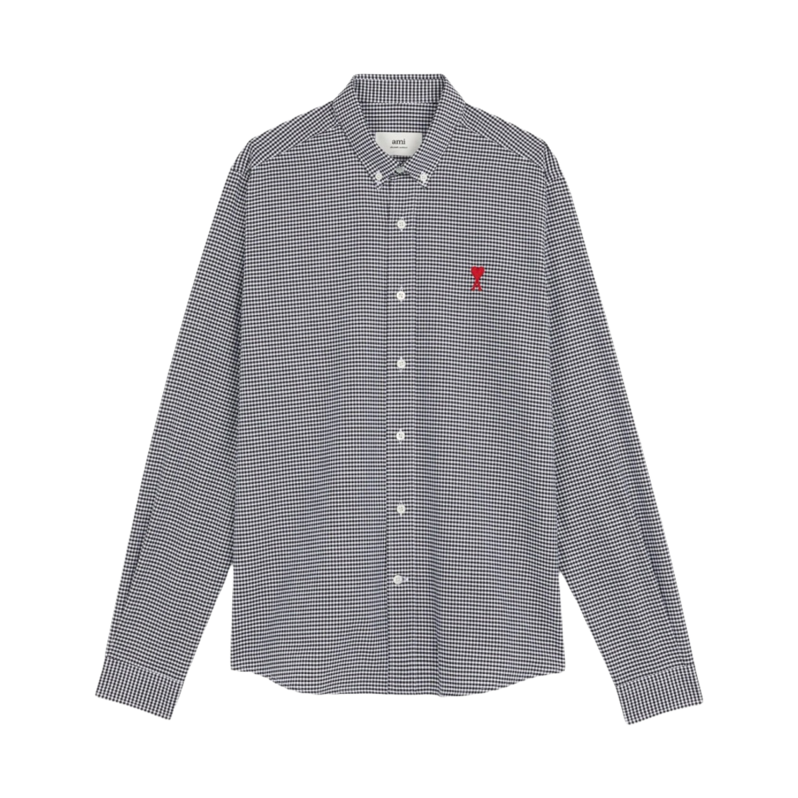 아미 스몰 하트 로고 깅엄 옥스포드 셔츠 블랙