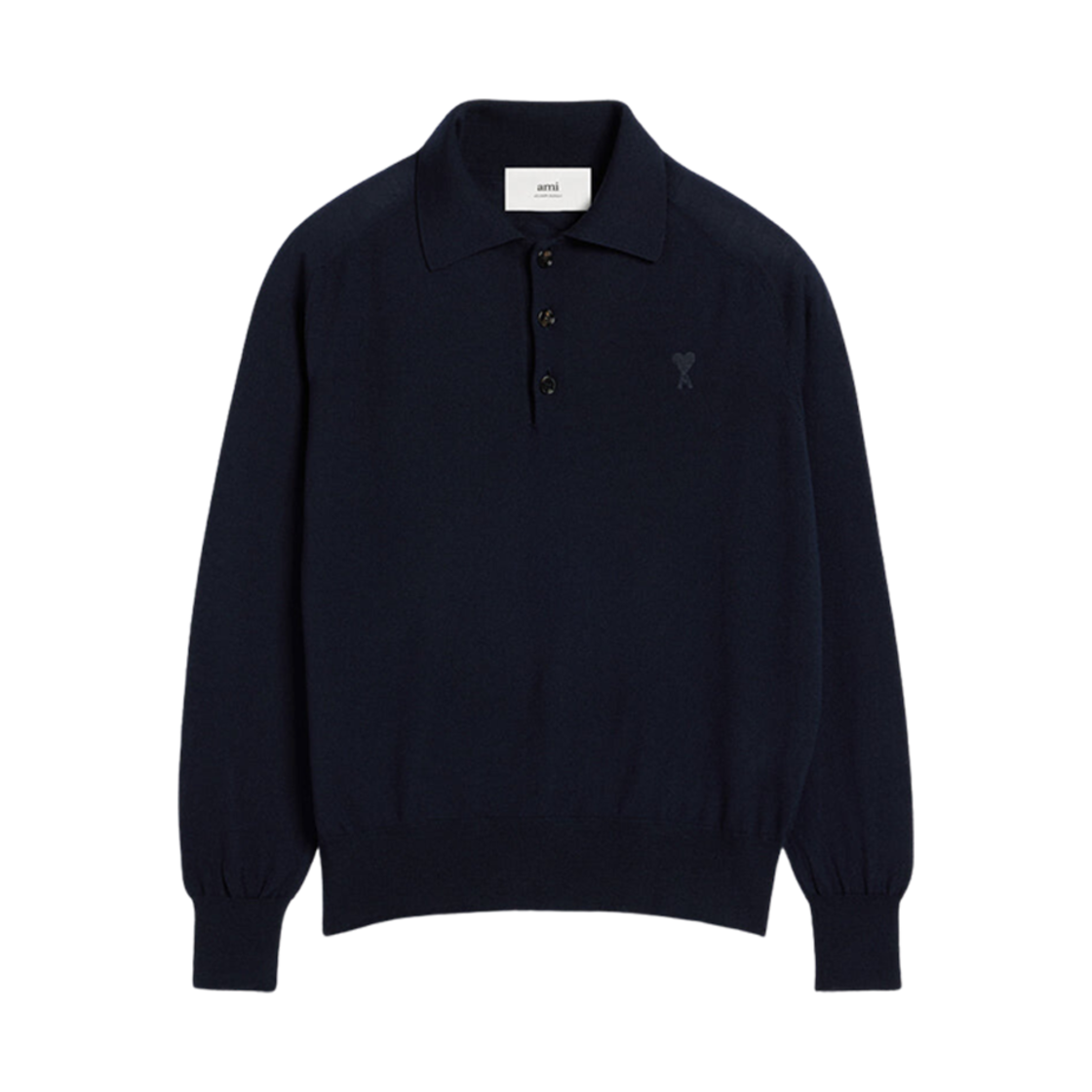아미 토날 톤온톤 하트 로고 엑스트라파인 메리노 울 머티리얼 폴로 스웨터 나이트 블루