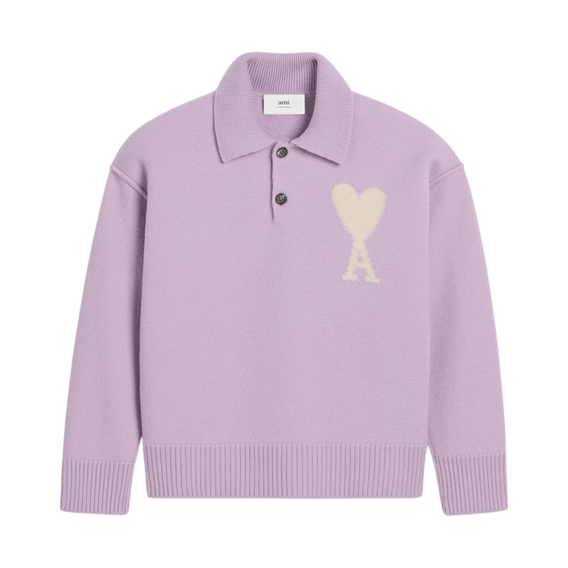 아미 빅 하트 로고 펠트 메리노 울 폴로 라일락 오프 화이트