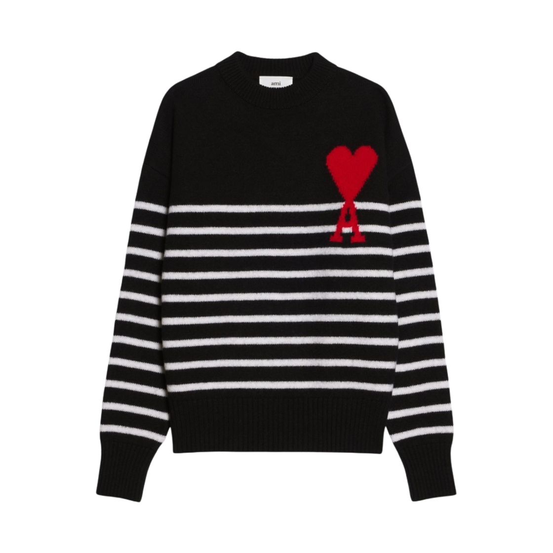 아미 빅 하트 로고 스트라이프 스웨터 블랙 화이트