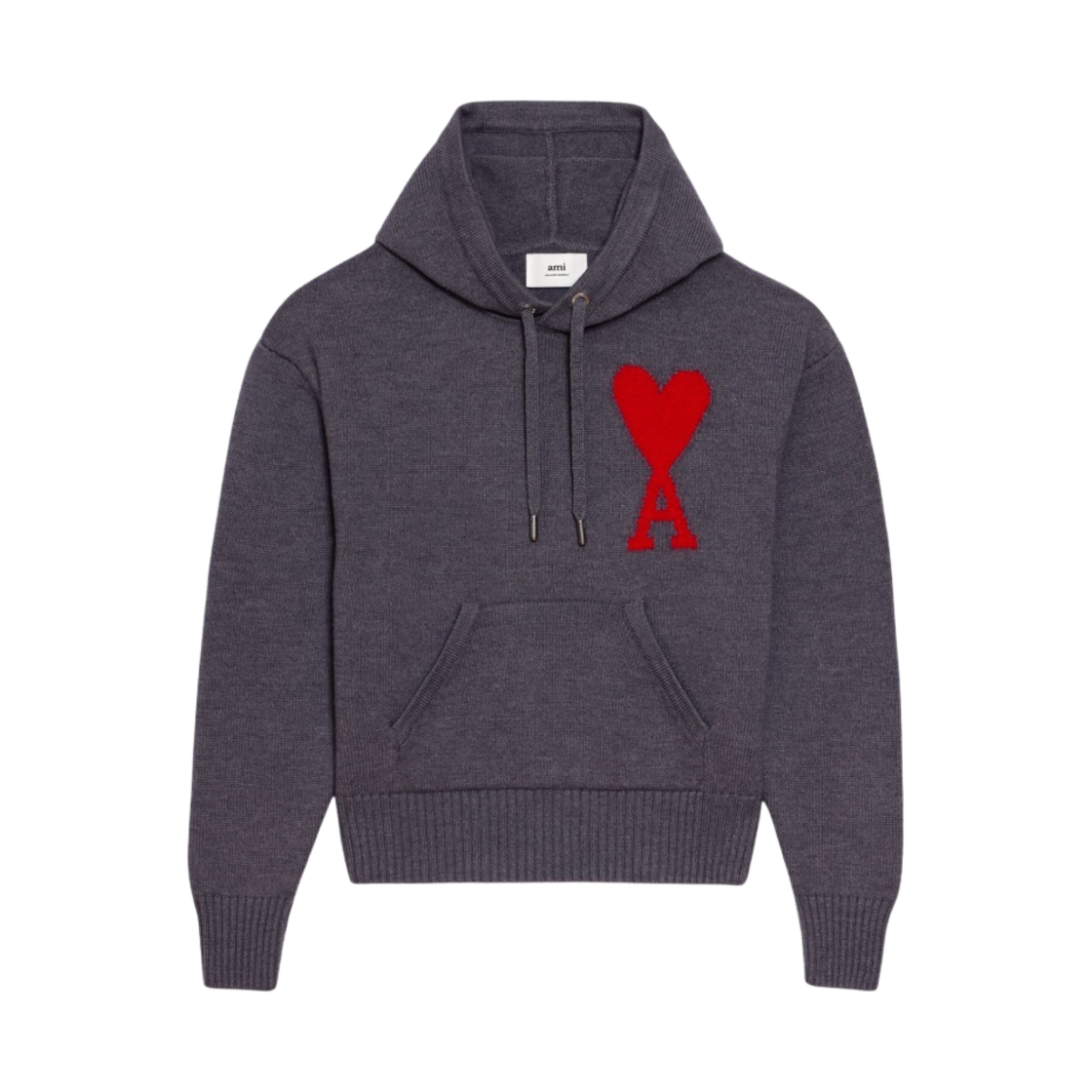 아미 빅 하트 로고 오버사이즈 인타르시아 후드 그레이 레드