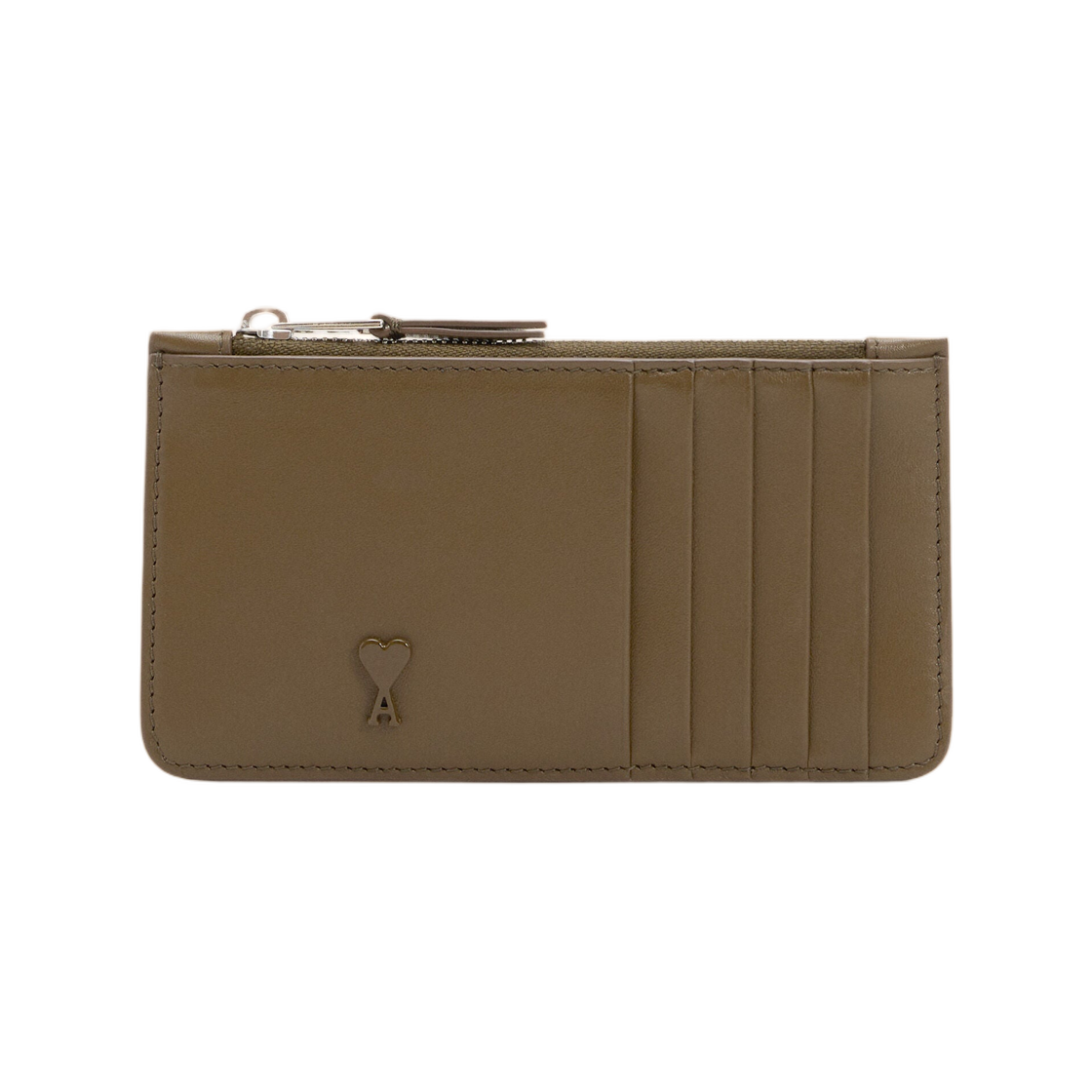 아미 그린 카우 레더 파리 파리 지퍼 카드 홀더 다크 카키