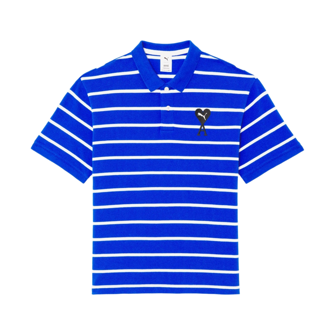 아미 스몰 하트 로고 스트라이프 폴로 셔츠 블루 화이트