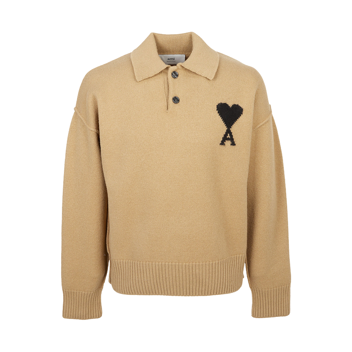 아미 빅 하트 니트 폴로 오프 화이트 앤틱 클레이