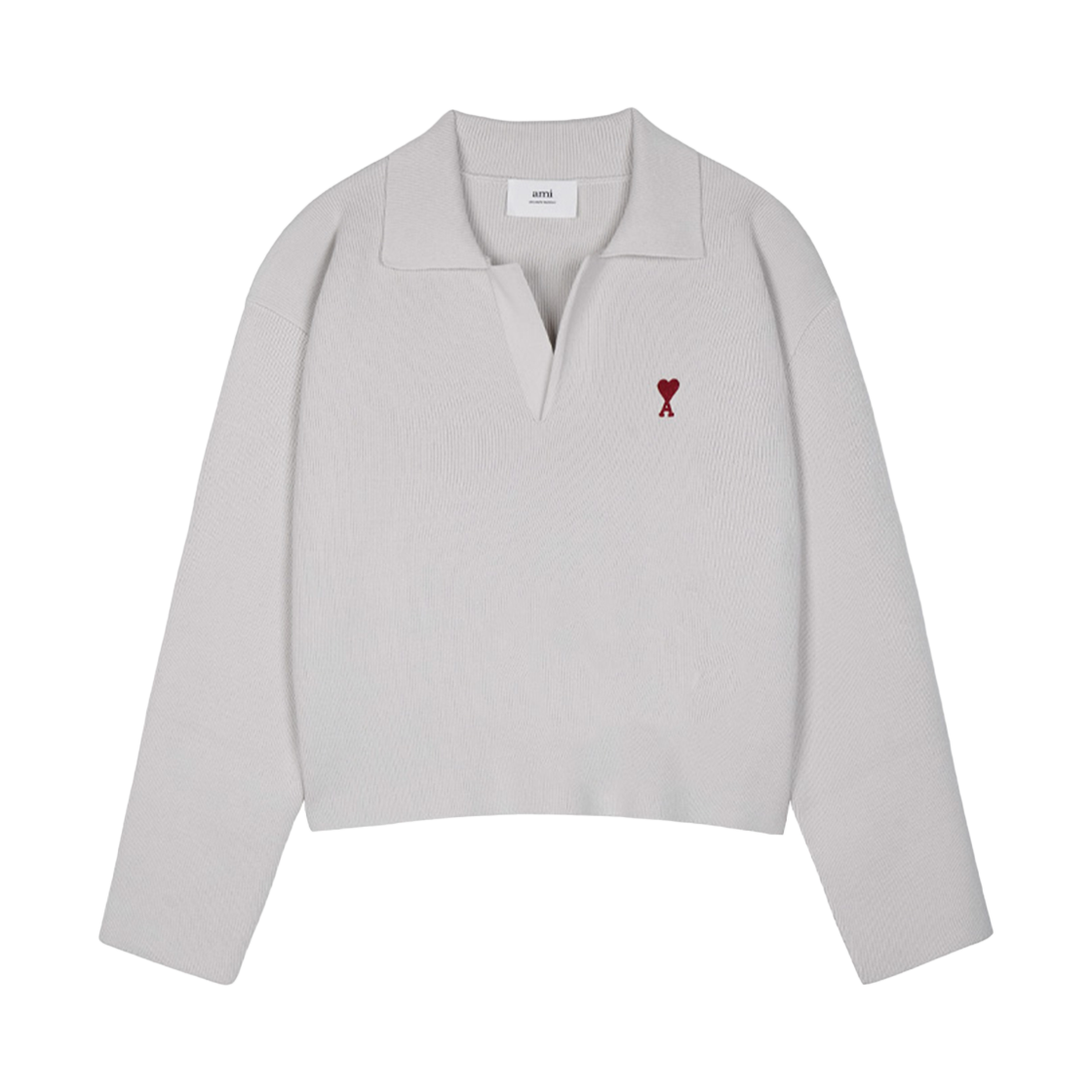 (W) 아미 스몰 하트 로고 롱 슬리브 니트 폴로 셔츠 초크