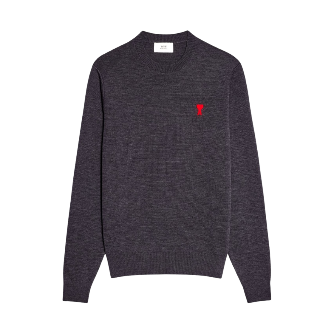 아미 빅 하트 로고 펠트 메리노 울 스웨터 헤더 그레이 레드