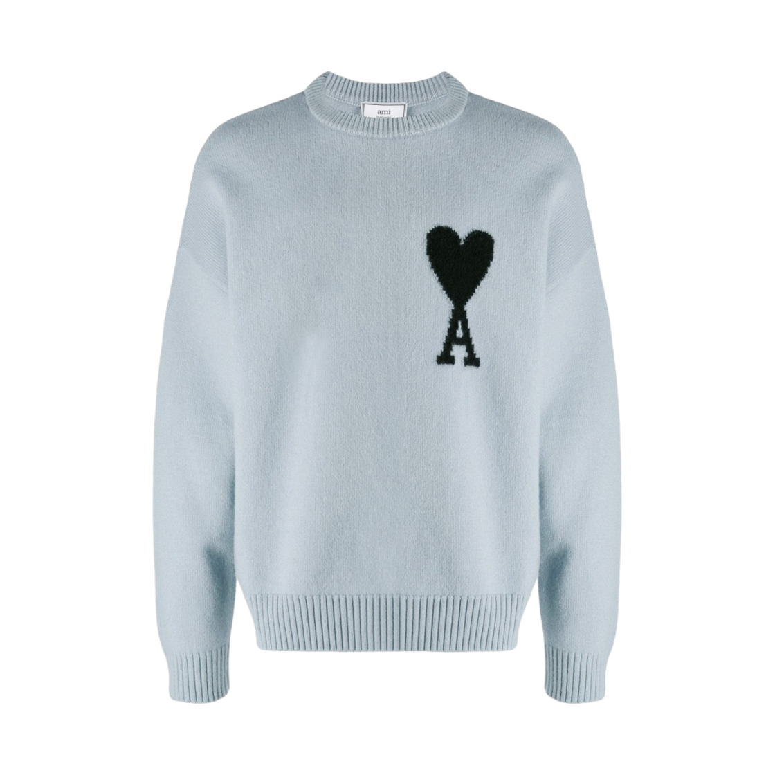 아미 빅 하트 로고 오버사이즈 인타르시아 스웨터 스틸 블루