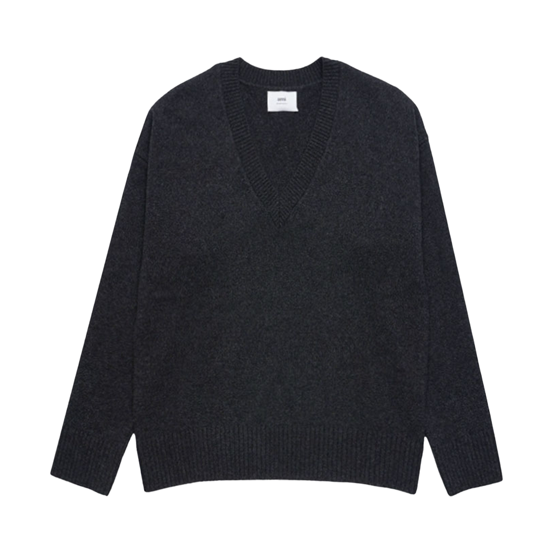 아미 빅 하트 로고 클라우디 울 스웨터 다크 그레이
