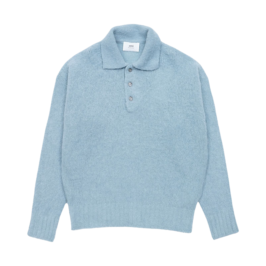 아미 헤어리 폴로 스웨터 아쿠아마린