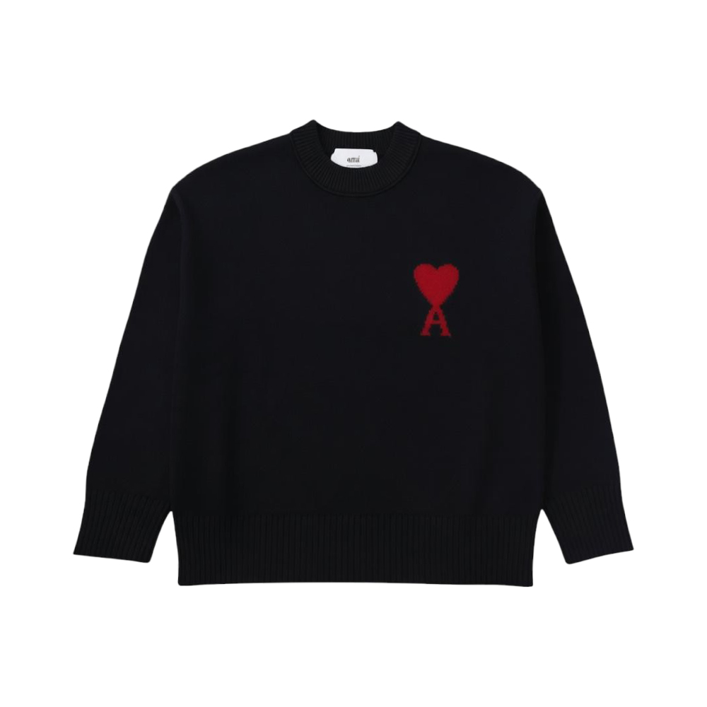 아미 빅 하트 로고 오버사이즈 인타르시아 스웨터 블랙 레드
