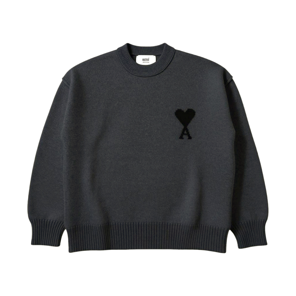 아미 빅 하트 로고 오버사이즈 인타르시아 스웨터 그레이 블랙