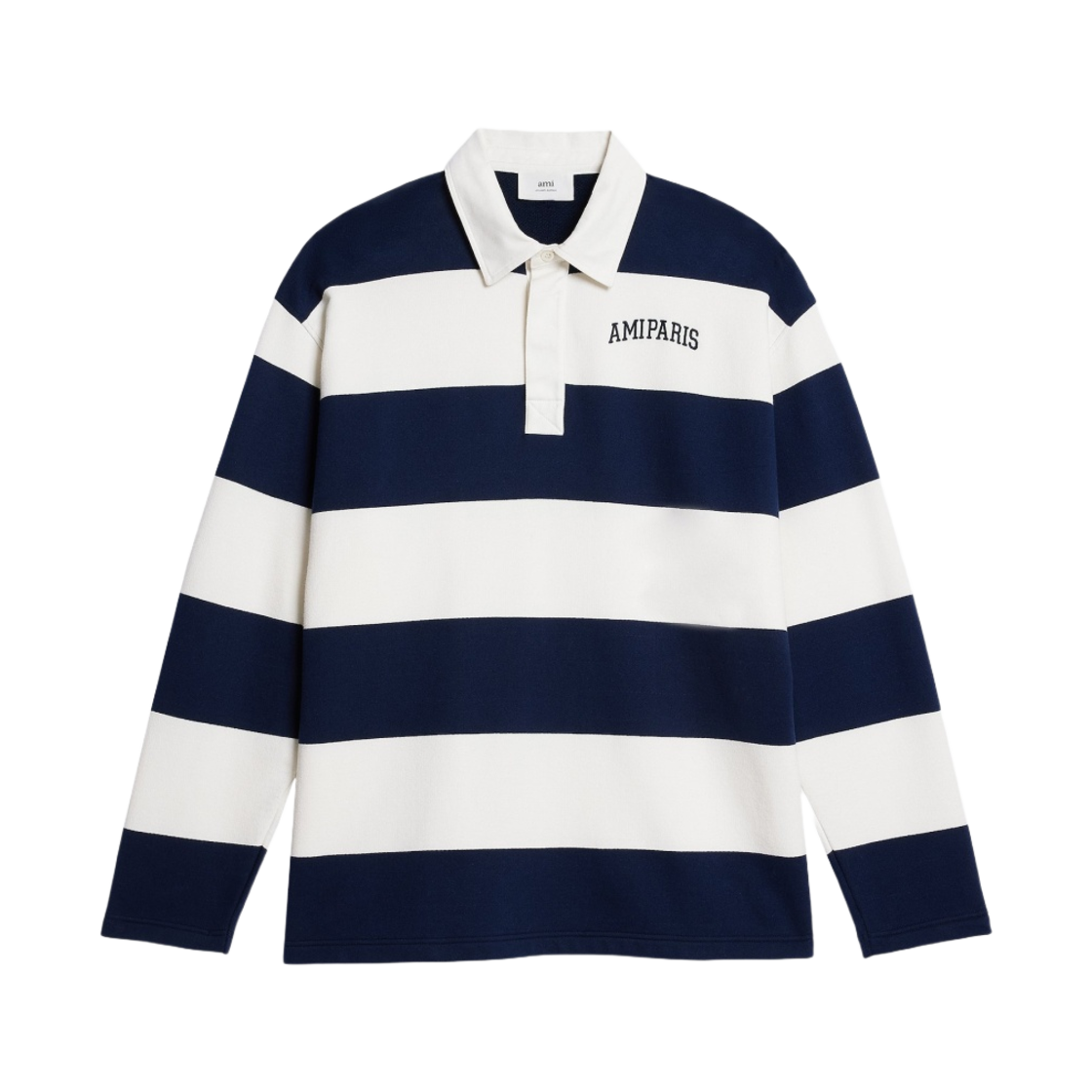 아미 럭비 스트라이프 폴로 셔츠 아미 파리 내츄럴 화이트 노틱 블루