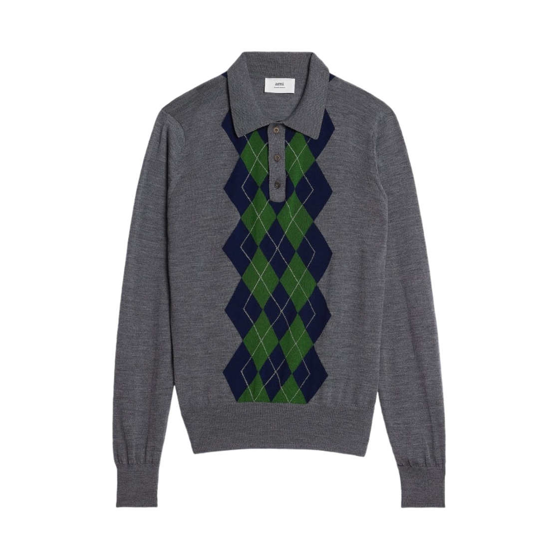 아미 아가일 니트웨어 폴로 셔츠 헤더 그레이 네이비 그린