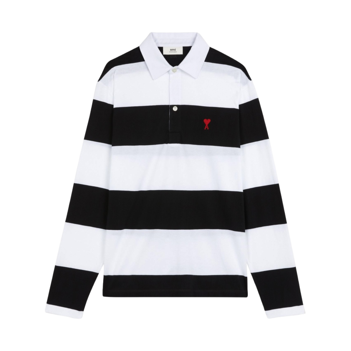 아미 스몰 하트 로고 스트라이프 폴로 셔츠 블랙 화이트