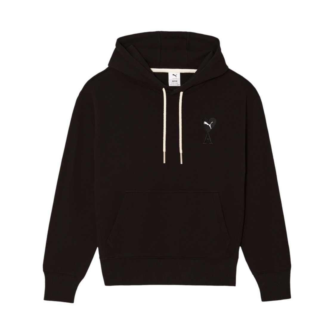 아미 하트 로고 브러쉬드 코튼 플리스 후드 스웨트셔츠 블랙