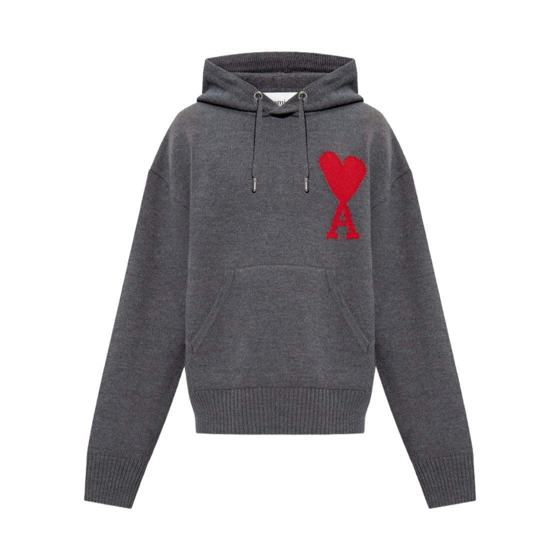 아미 빅 하트 로고 오버사이즈 인타르시아 후드 그레이 레드