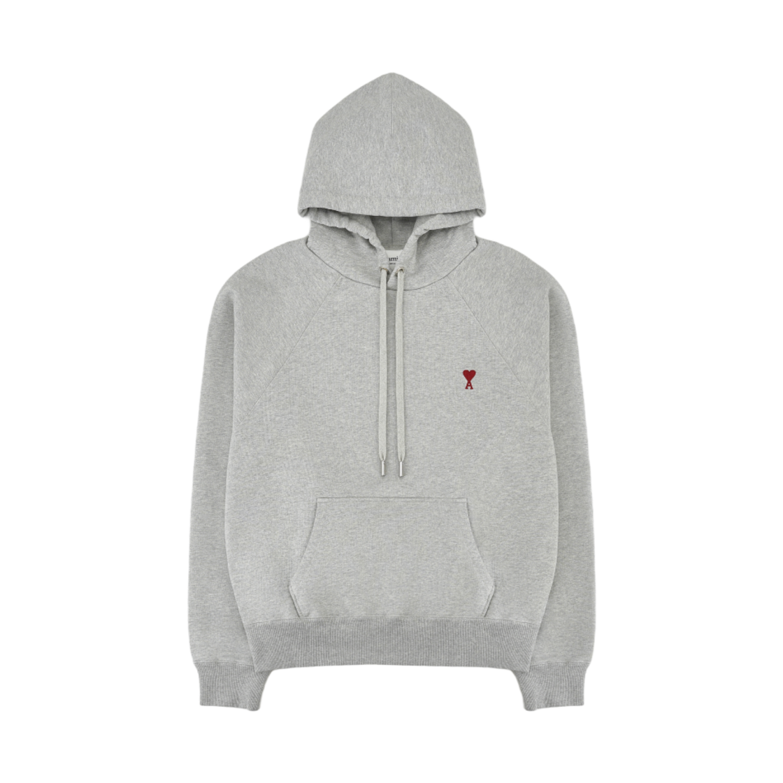 아미 스몰 하트 로고 후드 스웨트셔츠 헤더 그레이