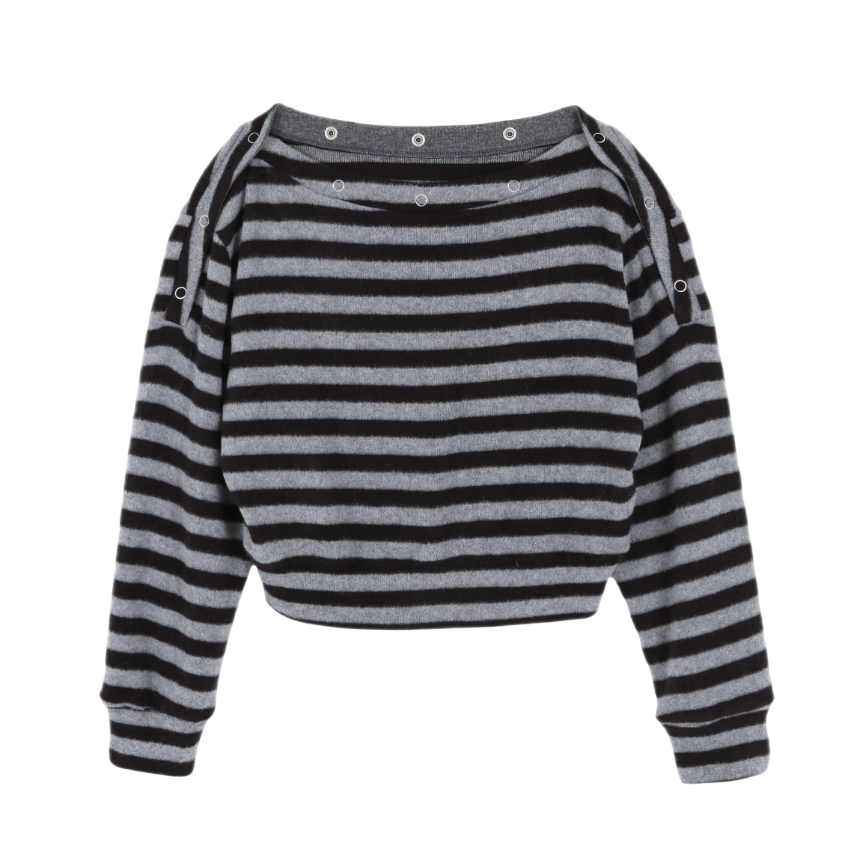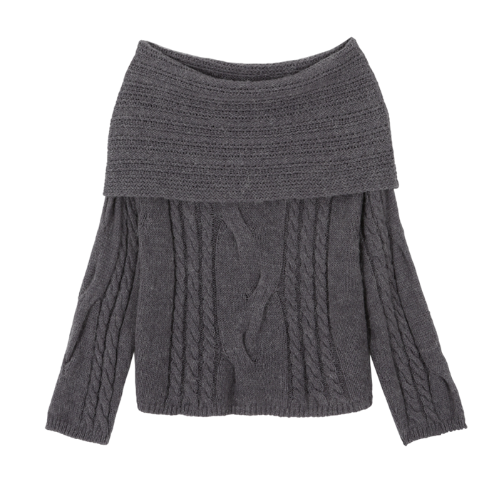 아수라 알파카 트위스트 오프 숄더 니트 그레이