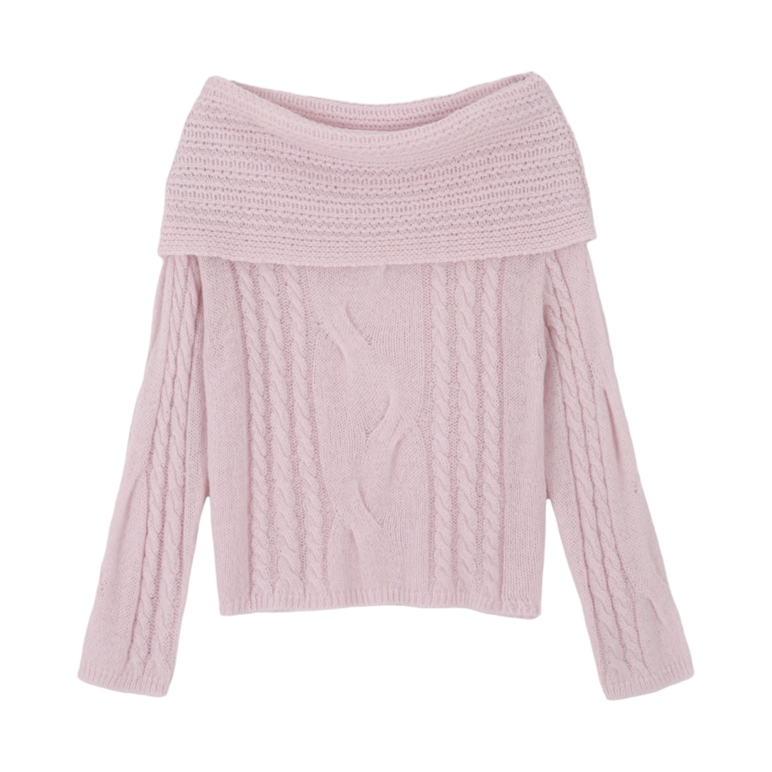 아수라 알파카 트위스트 오프 숄더 니트 핑크