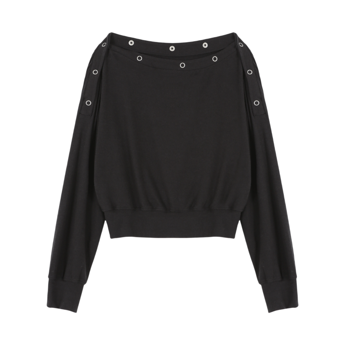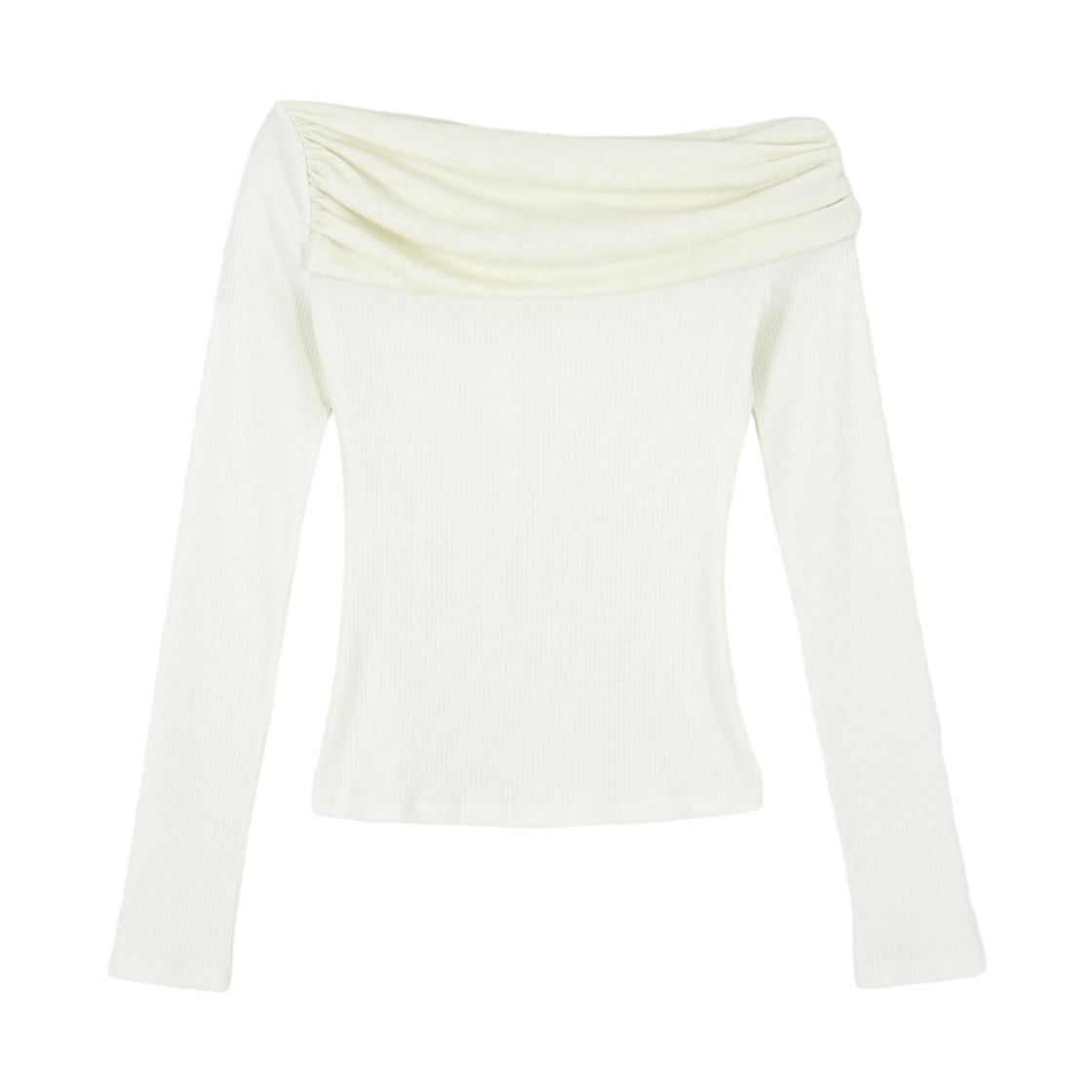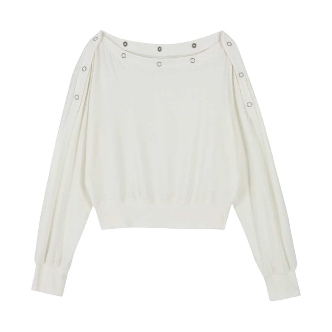 아수라 아일렛 원 숄더 롱 슬리브 티 아이보리