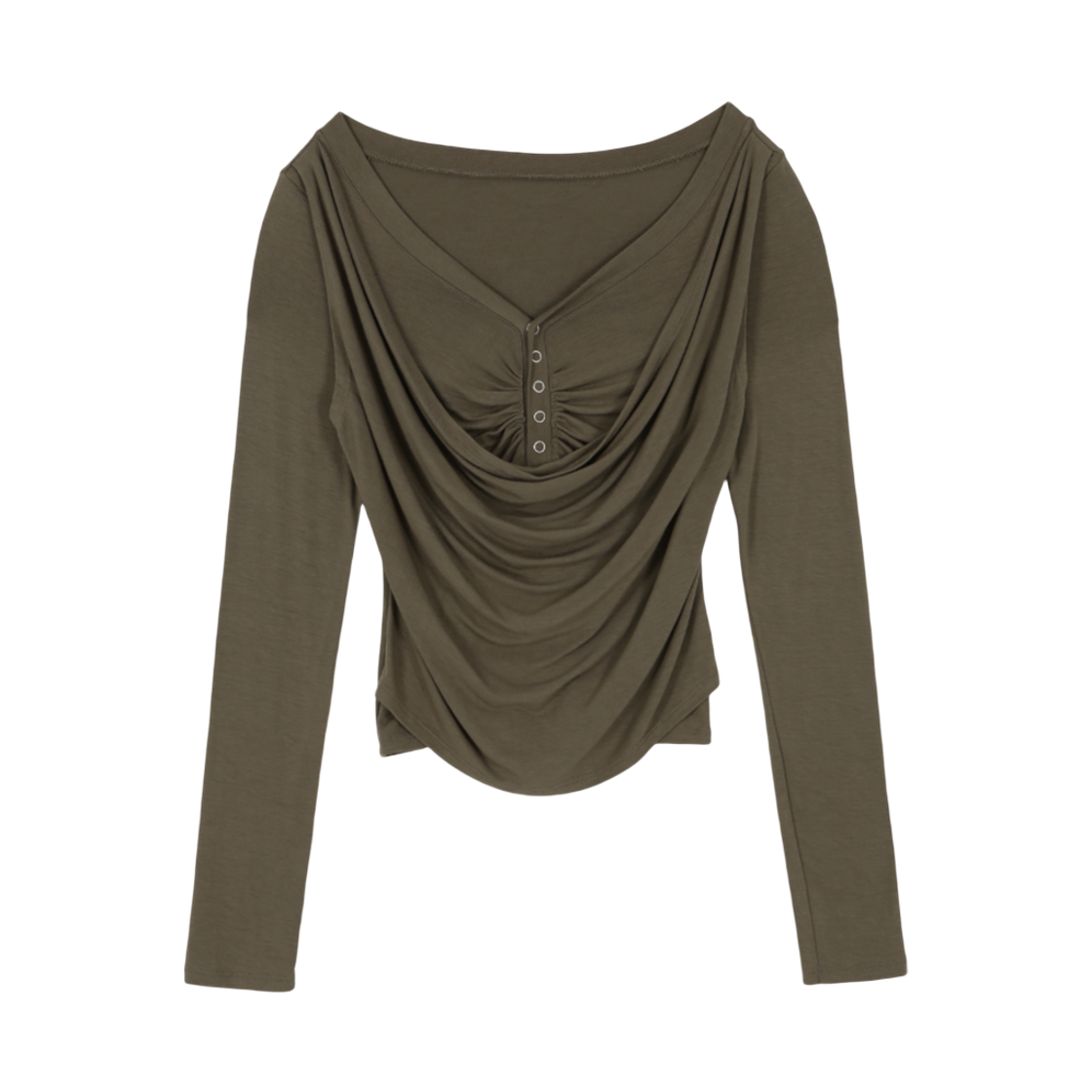 아수라 아일렛 원 숄더 롱 슬리브 티 네이비