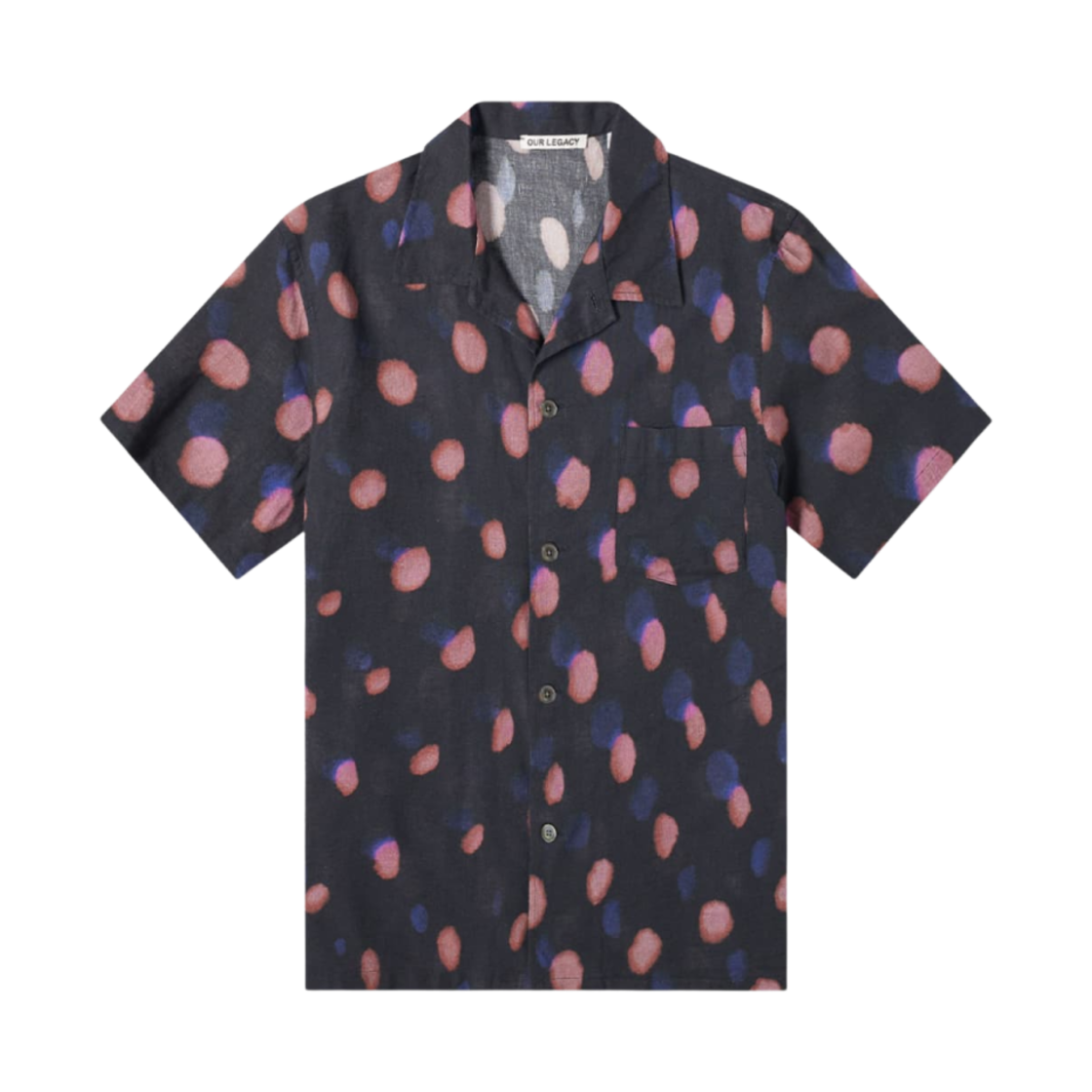 아워레가시 도티드 프린트 코튼 실크 휴센 셔츠 숏슬리브