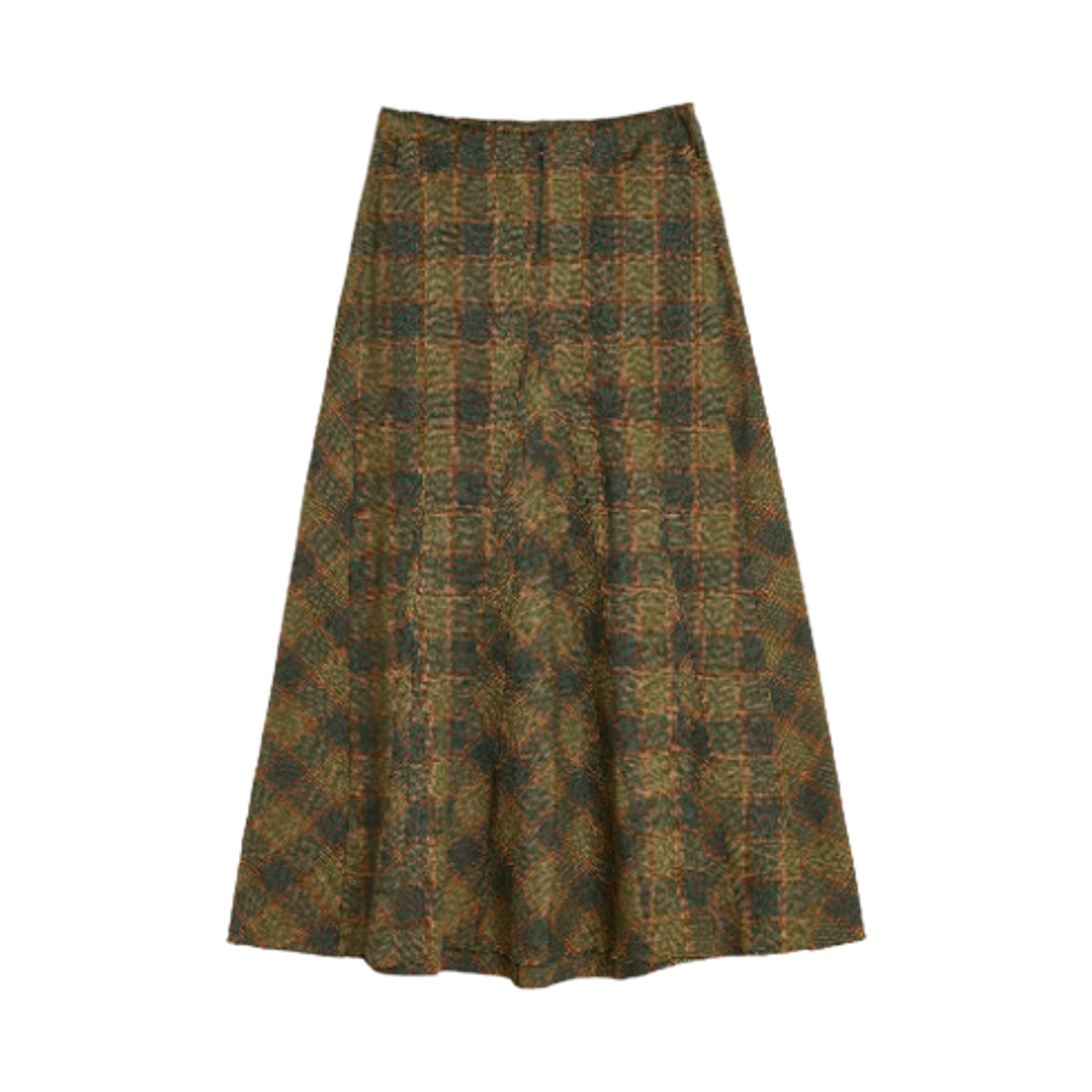 (W) 아워레가시 빌니우스 로우 트위스트 체크 레벨 스커트 그린