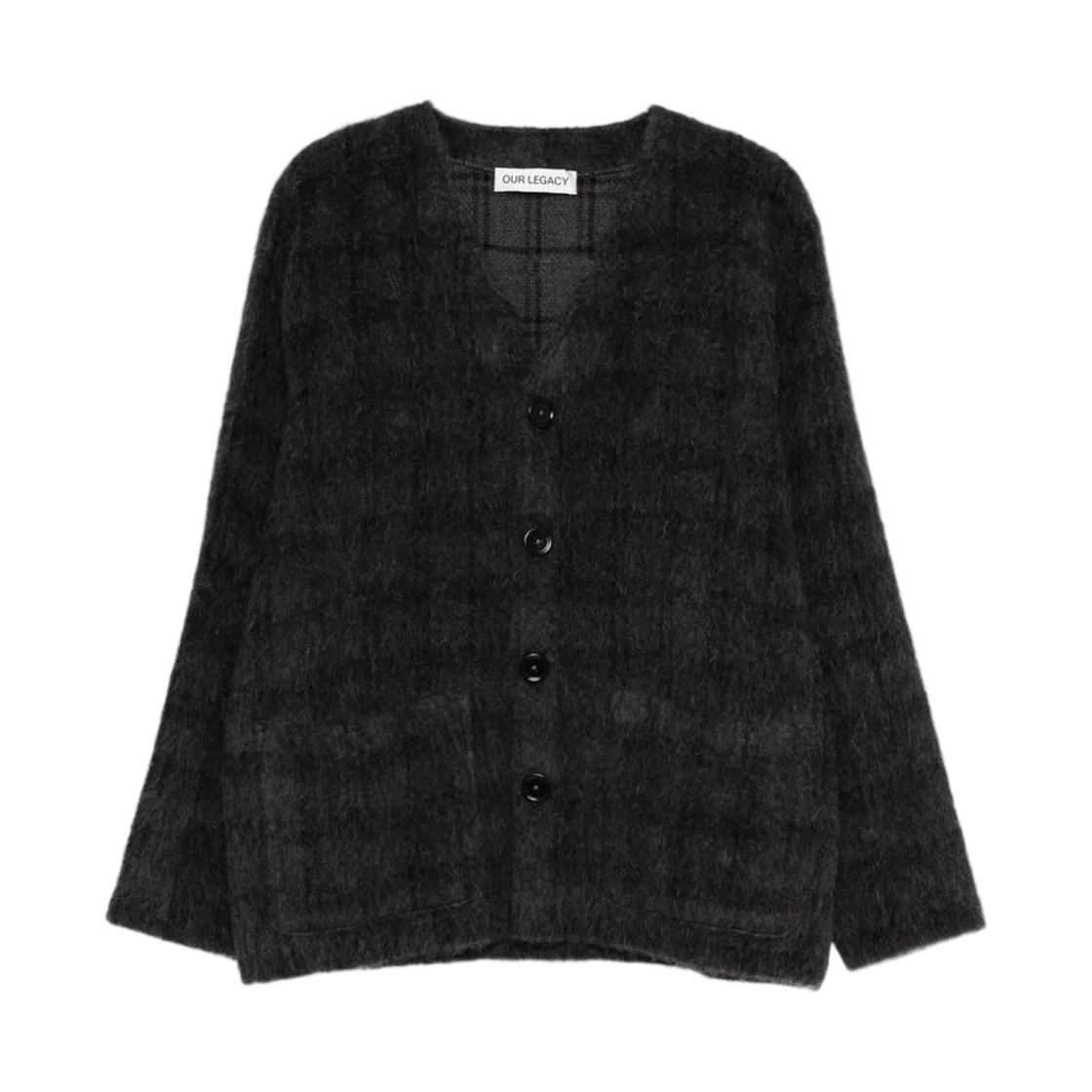 아워레가시 가디건 퍼즈 플럼 체크 헤어리 울