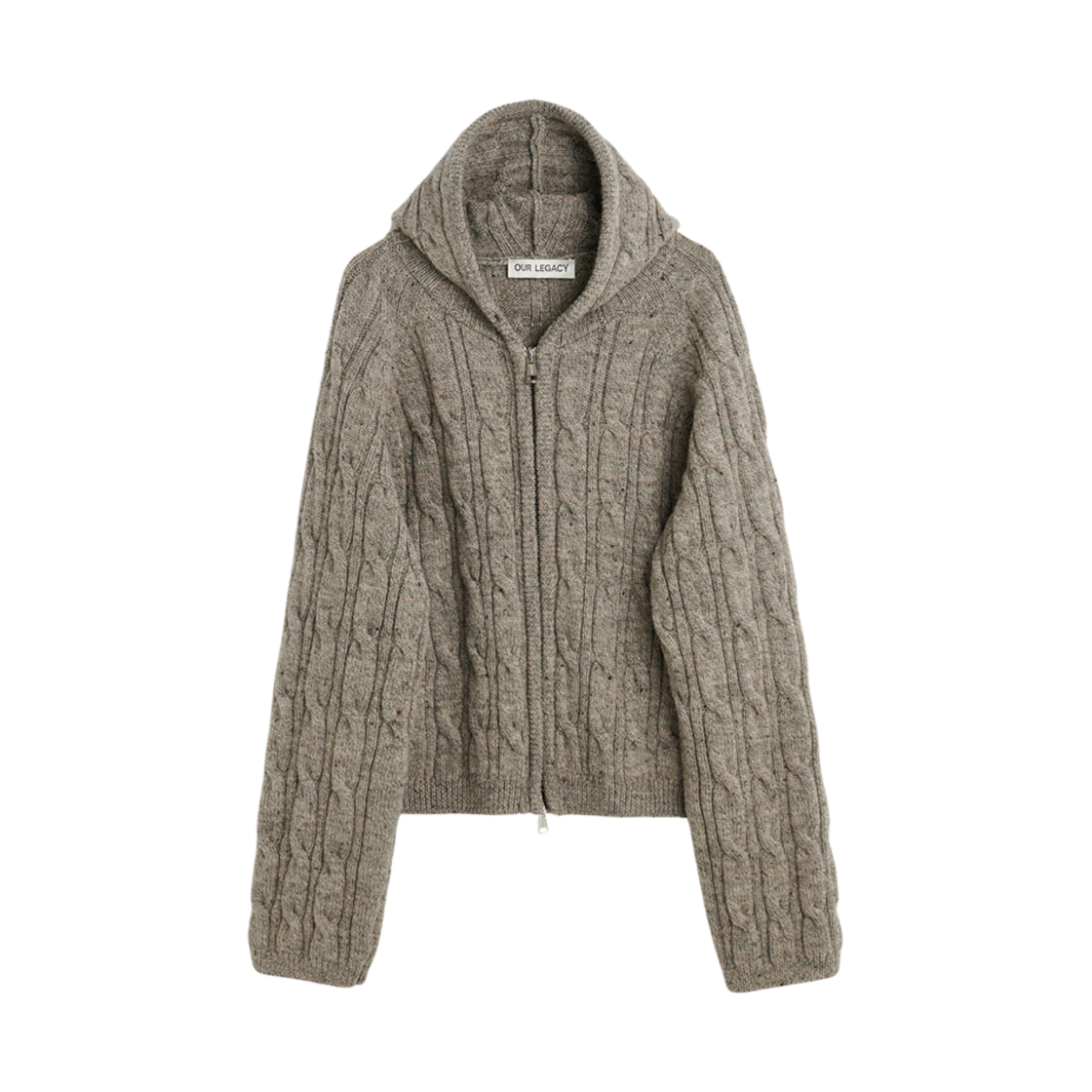 (W) 아워레가시 레벨 케이블 니트 집업 후드 그레이 멜란지