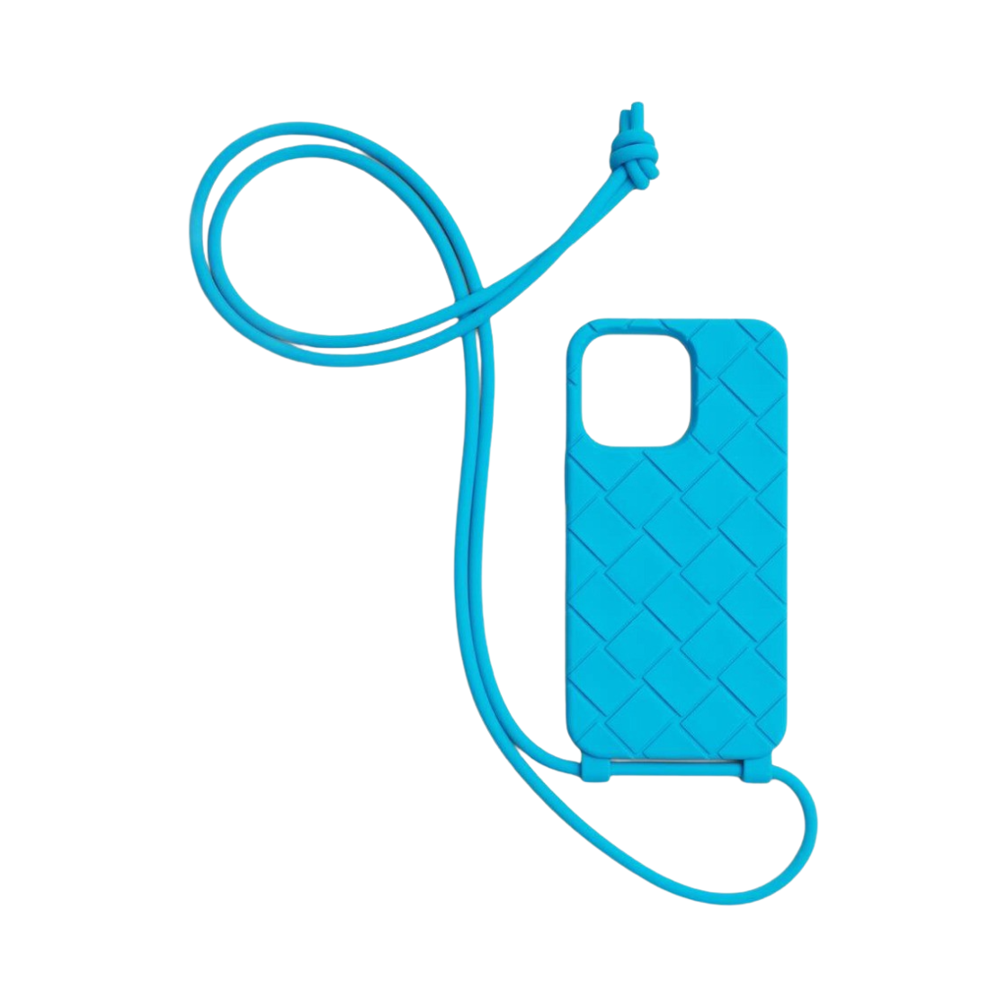 보테가 베네타 아이폰 13 프로 케이스 온 스트랩 페일 블루