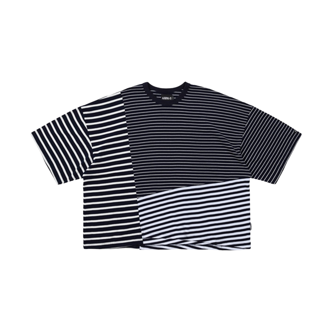 아조바이아조 스트라이프 믹스드 티셔츠 네이비