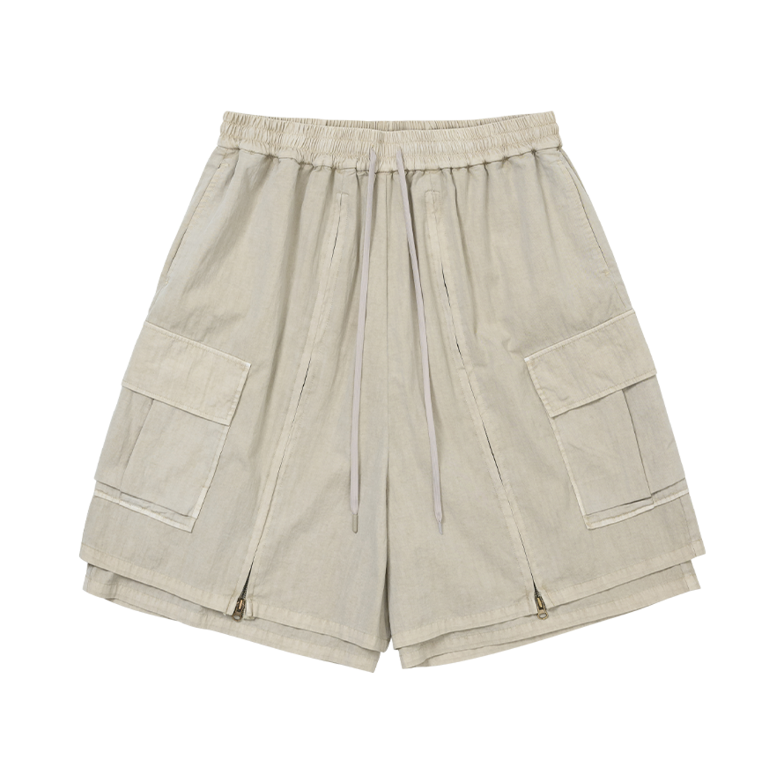 아조바이아조 워시드 레이어드 집업 쇼츠 아이보리